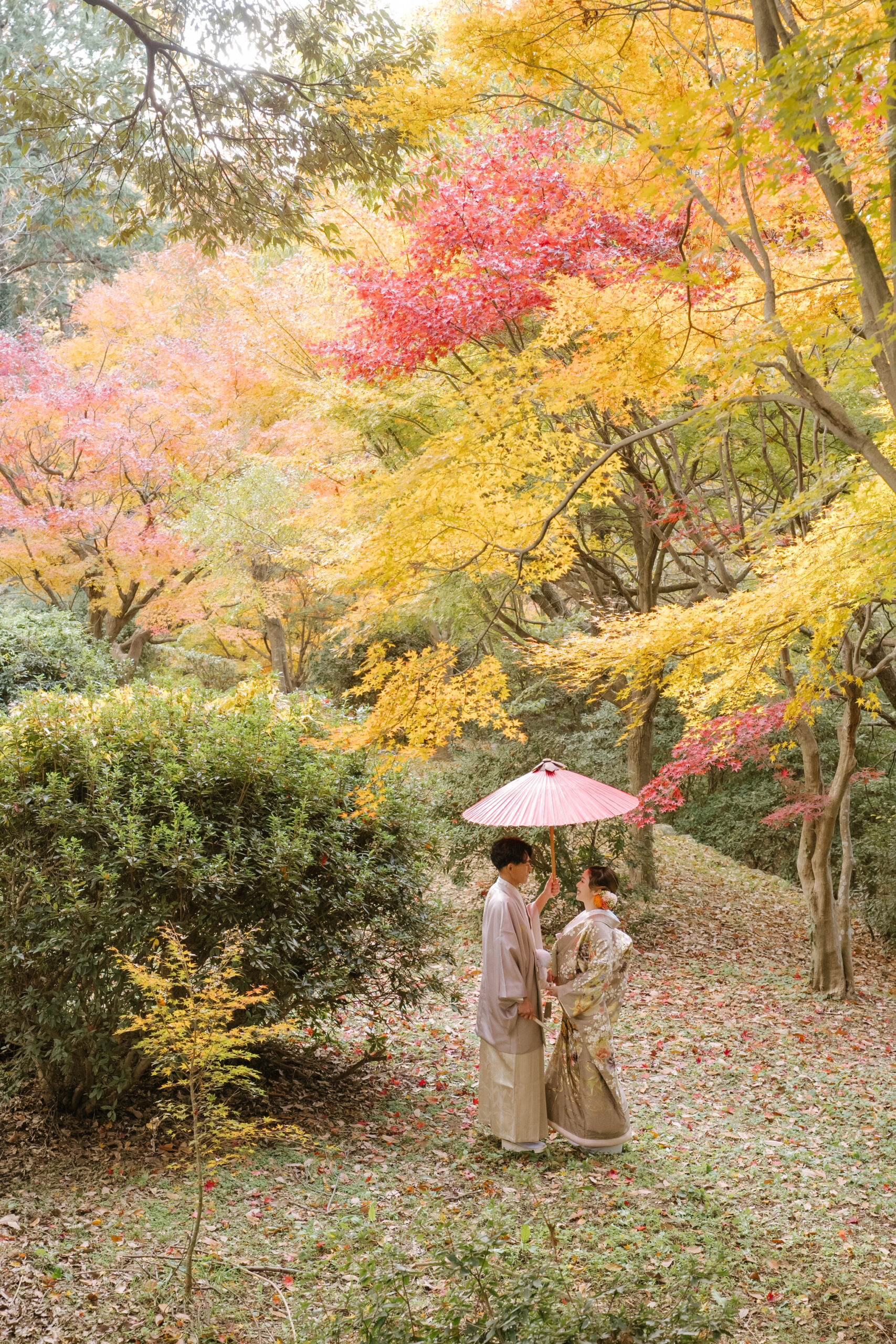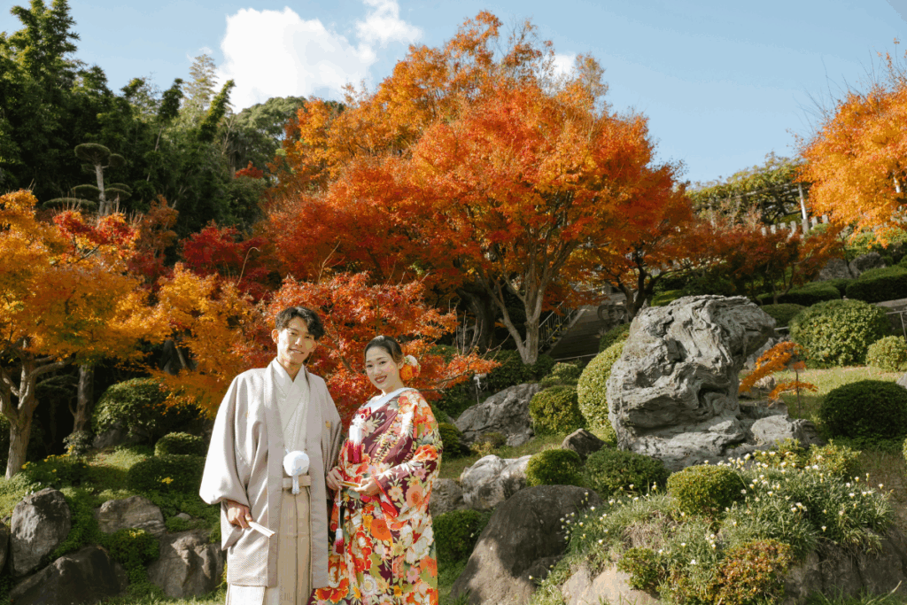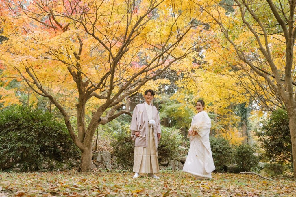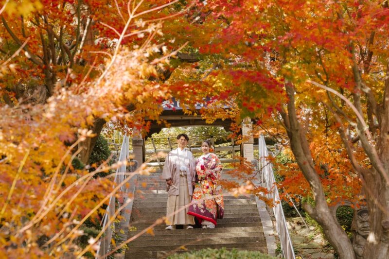 【秋だけの特別撮影】赤や黄に色づく紅葉の森と静かな景色に包まれて、和装も洋装も美しく。 期間限定価格で叶える秋のロケーションフォト。