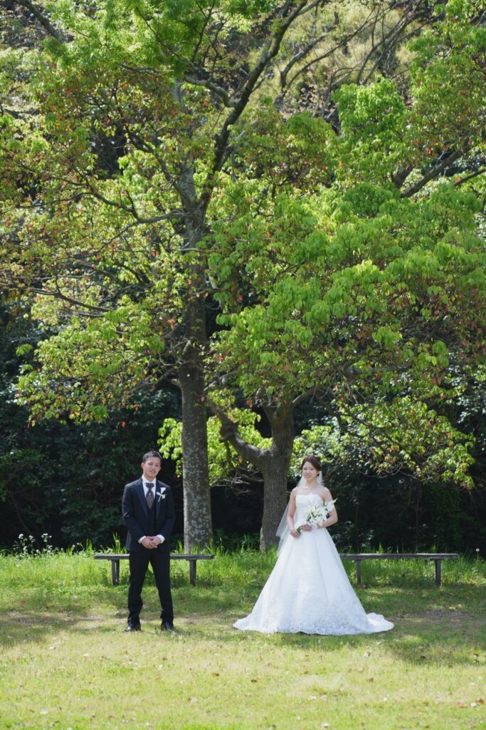 やわらかな光とみずみずしい緑に包まれて、季節感あふれる新緑フォトを。 ナチュラルなのに特別感のある一枚が残せる、春〜夏にぴったりのフォトウェディングプラン。